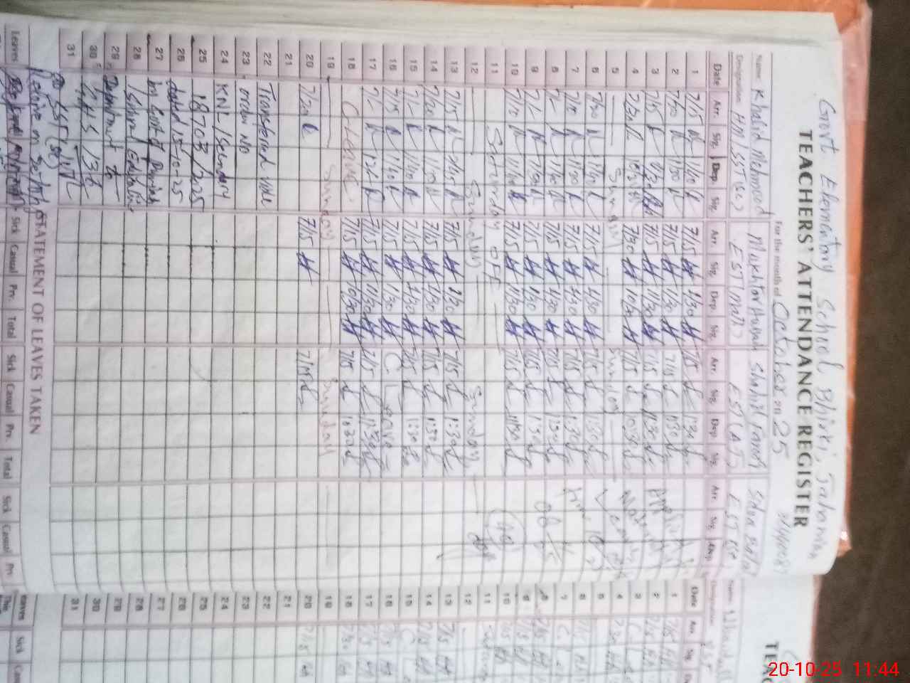 | Name: Kh**** Ma**** Designation: (School Headmaster's/Headmistress's) SST (Science ) Phone/Cell Number: 03**** |