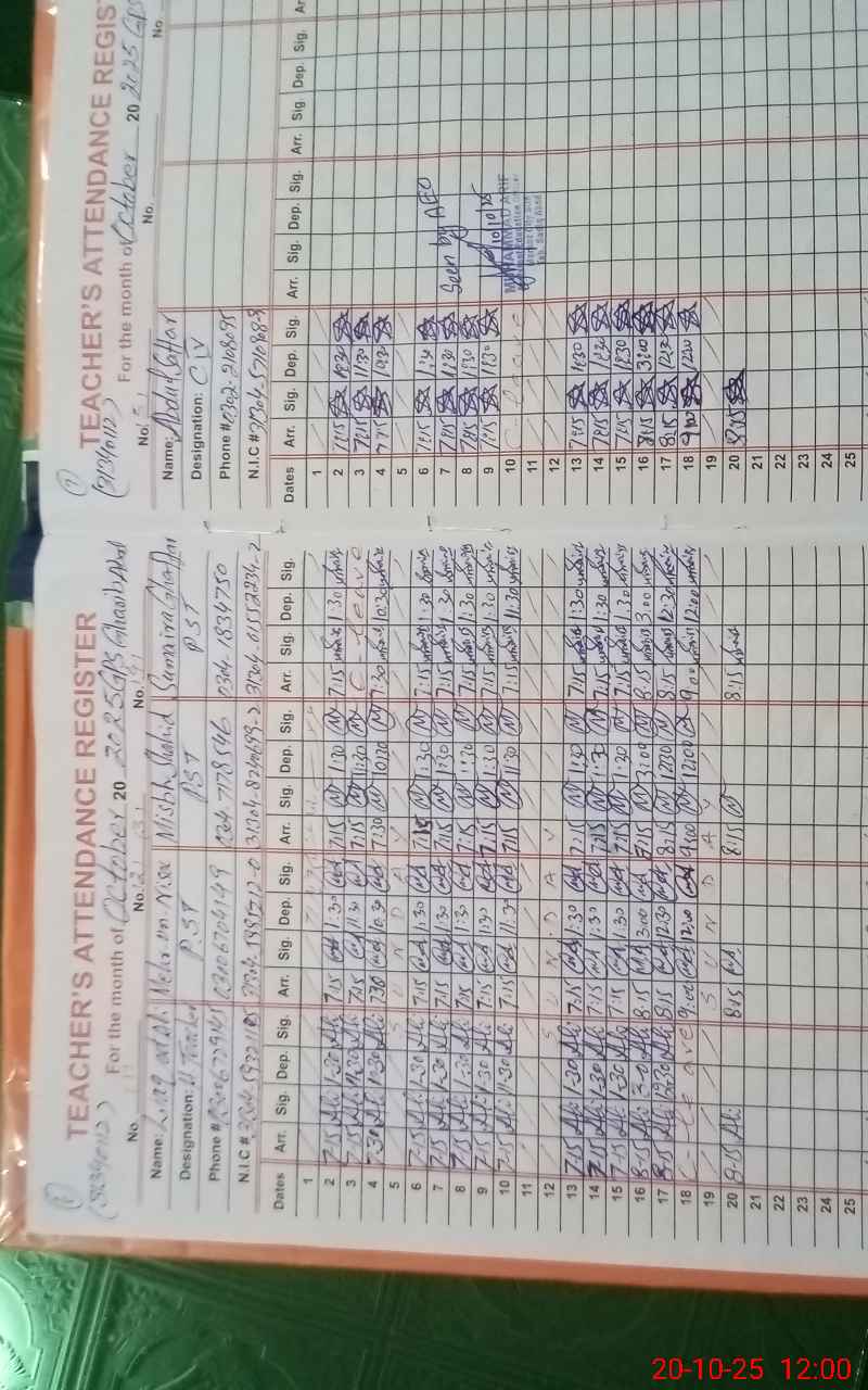 | Name: La**** Al**** Designation: (School Headmaster's/Headmistress's) PST/PTC/JV Phone/Cell Number: 03**** |