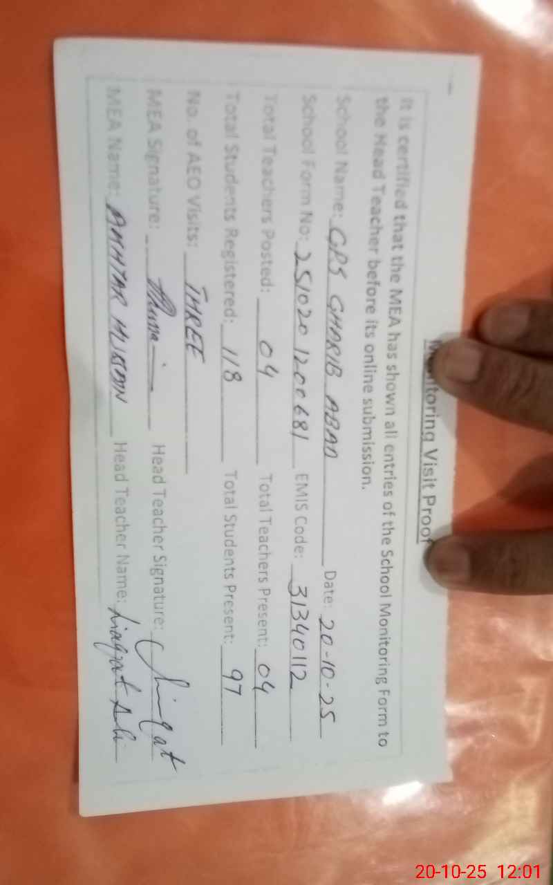 | EMIS Code: 31340112 | Name of School: GPS GHARIB ABAD | |||