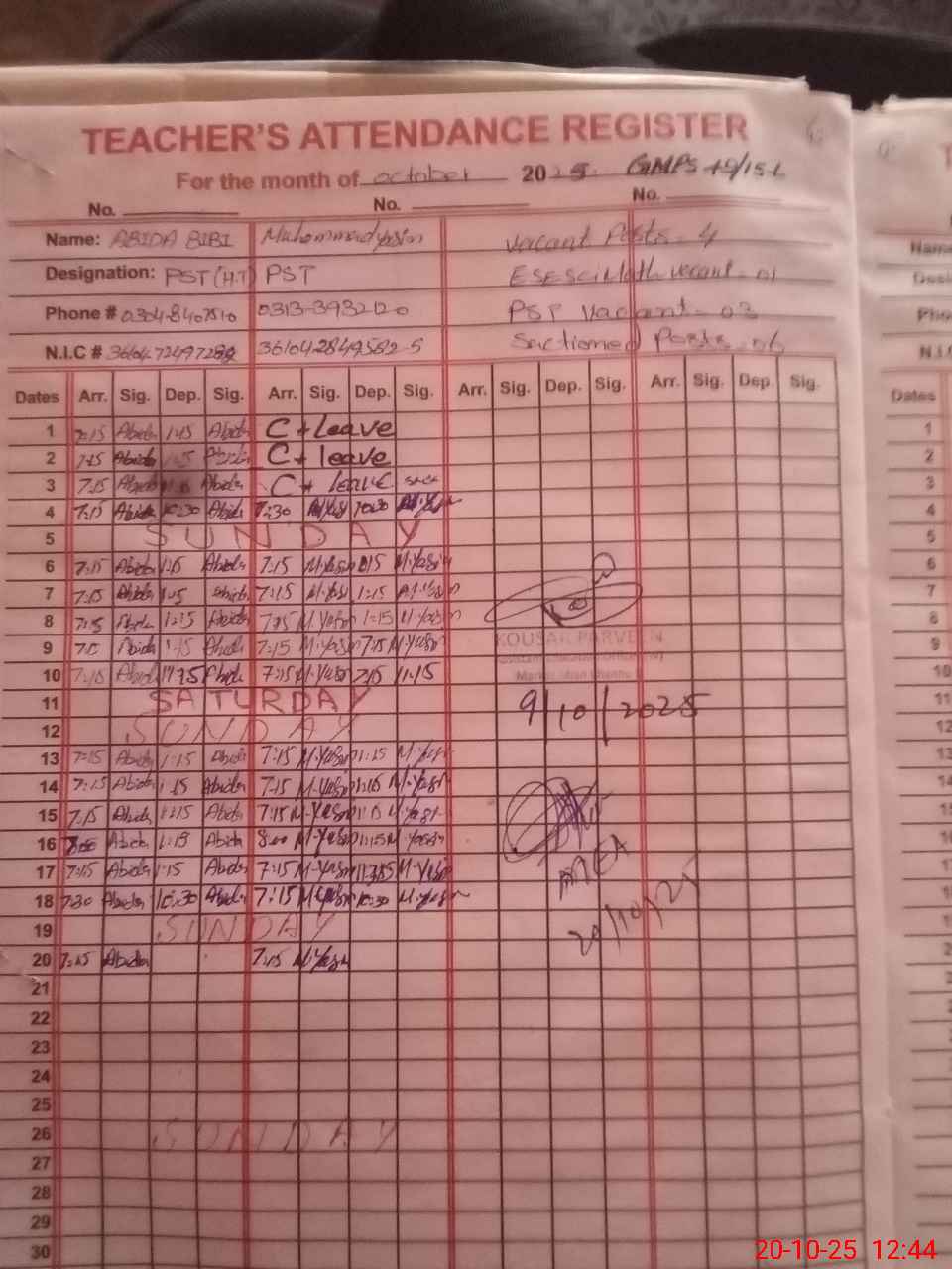 | Name: Ab**** Bi**** Designation: (School Headmaster's/Headmistress's) ESE (Arts) Phone/Cell Number: 03**** |