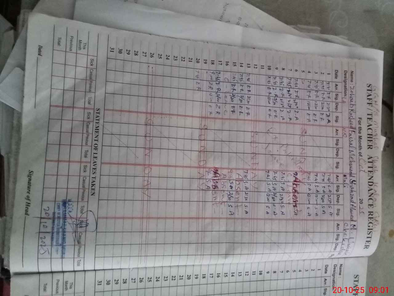 | 34**** | Mu**** Um**** | 0 | 0 | 0 | 0 | 0 | 0 | 0 | 0 | 0 | Absent (Un-Authorized) | ||