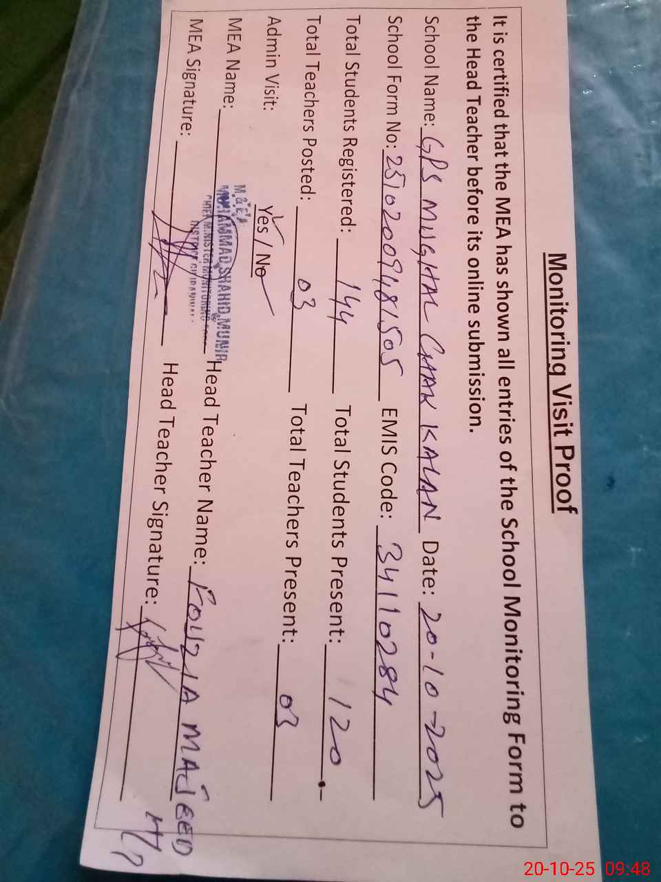 | EMIS Code: 34110284 | Name of School: GPS MUGHAL CHAK KALAN | |||
