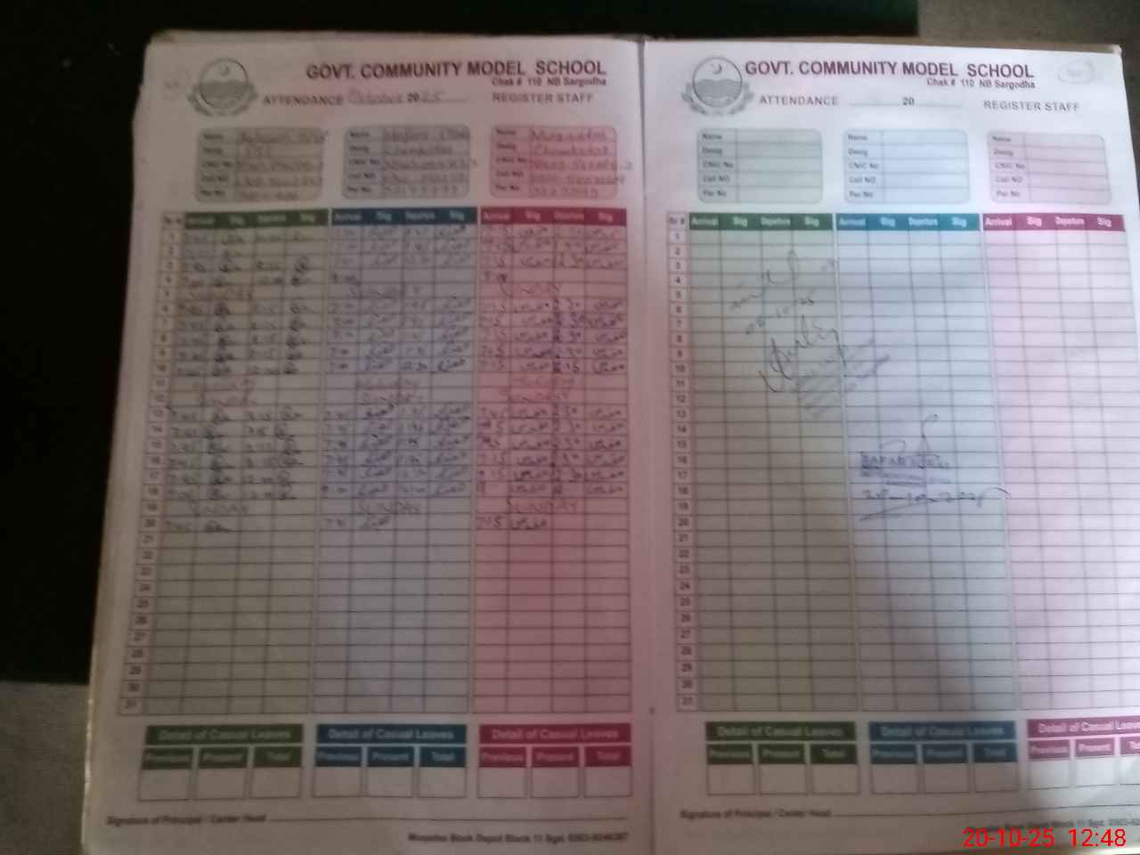 | CNIC | Full Name | Designation | R/C | Absence During Last Calender Month |