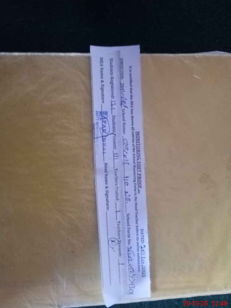 | Monitoring Date: 20-10-2025 | Start Time: 20-10-2025 12:27 PM | End Time: 20-10-2025 12:49 PM | Name of MEA: ZA**** IQ**** | |