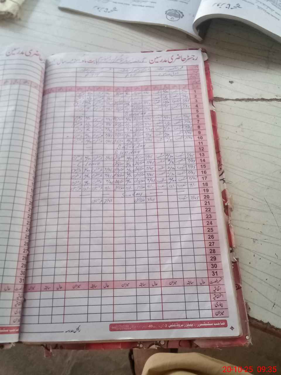 | CNIC | Full Name | Designation | R/C | Absence During Last Calender Month |