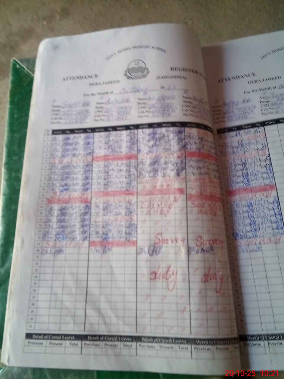 | Leave | Duty | Absent | Maternity | Medical | Ex- Pak |