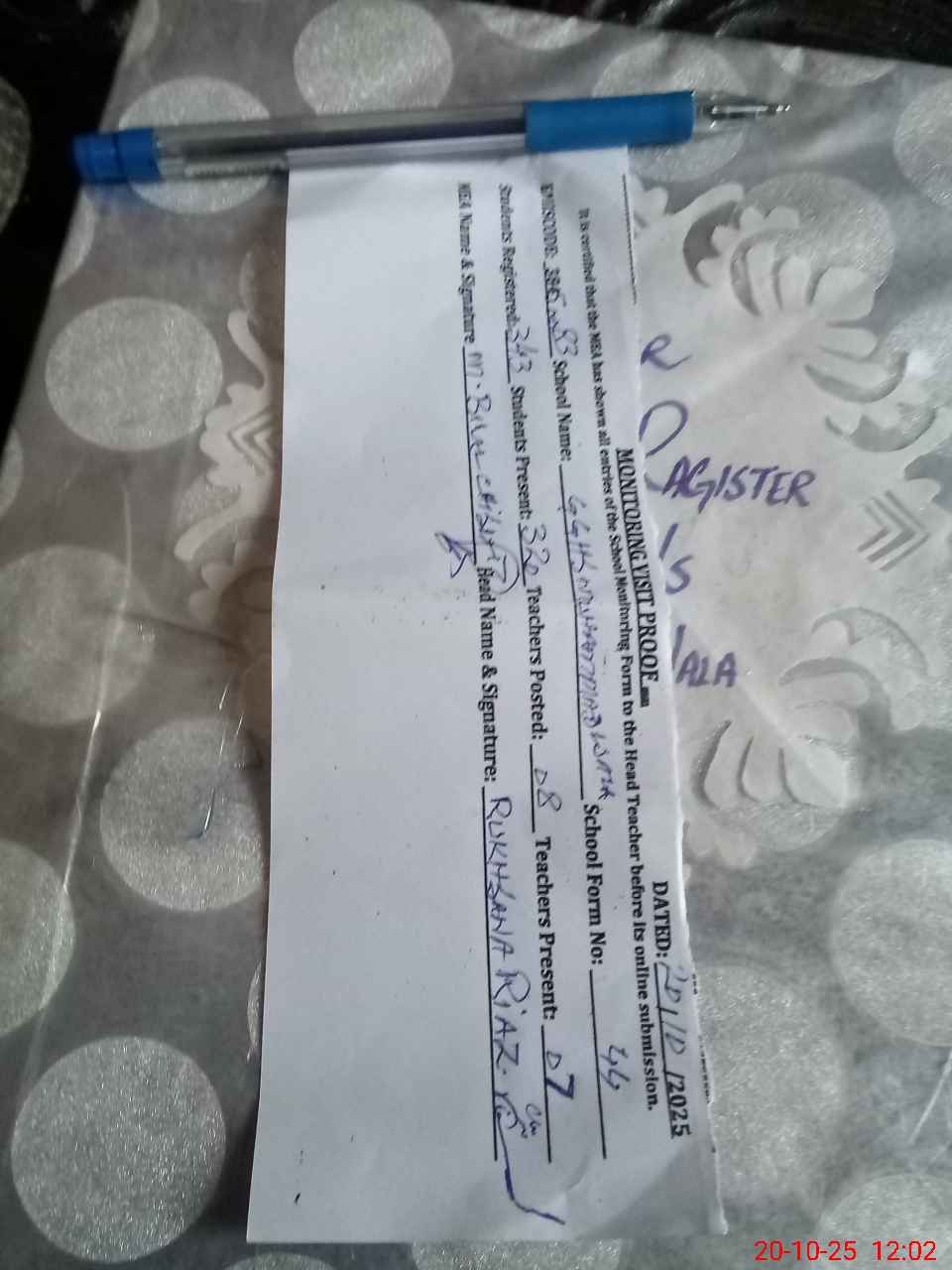 | Certified that this School was Inspected by the Undersigned MEA/DMO Today and the Information Stated Above is as Per Record. | |||||