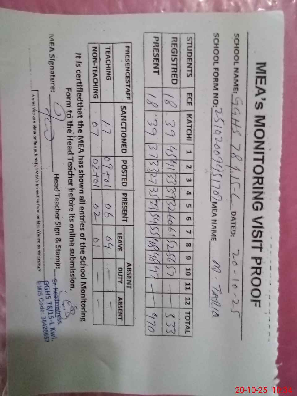 | EMIS Code: 36420657 | Name of School: GGHS 78/15-L, KHANEWAL | |||