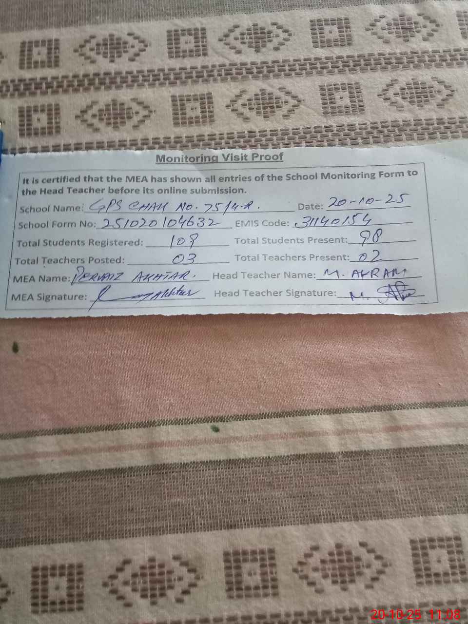 | EMIS Code: 31140154 | Name of School: GPS CHAK NO. 75/4-R | |||