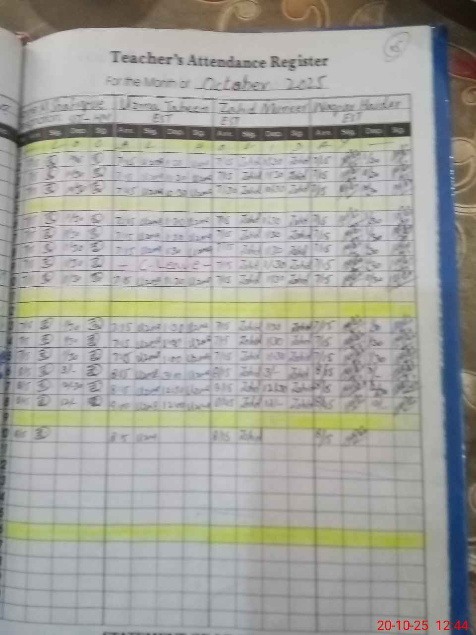 | CNIC | Full Name | Designation | R/C | Absence During Last Calender Month |