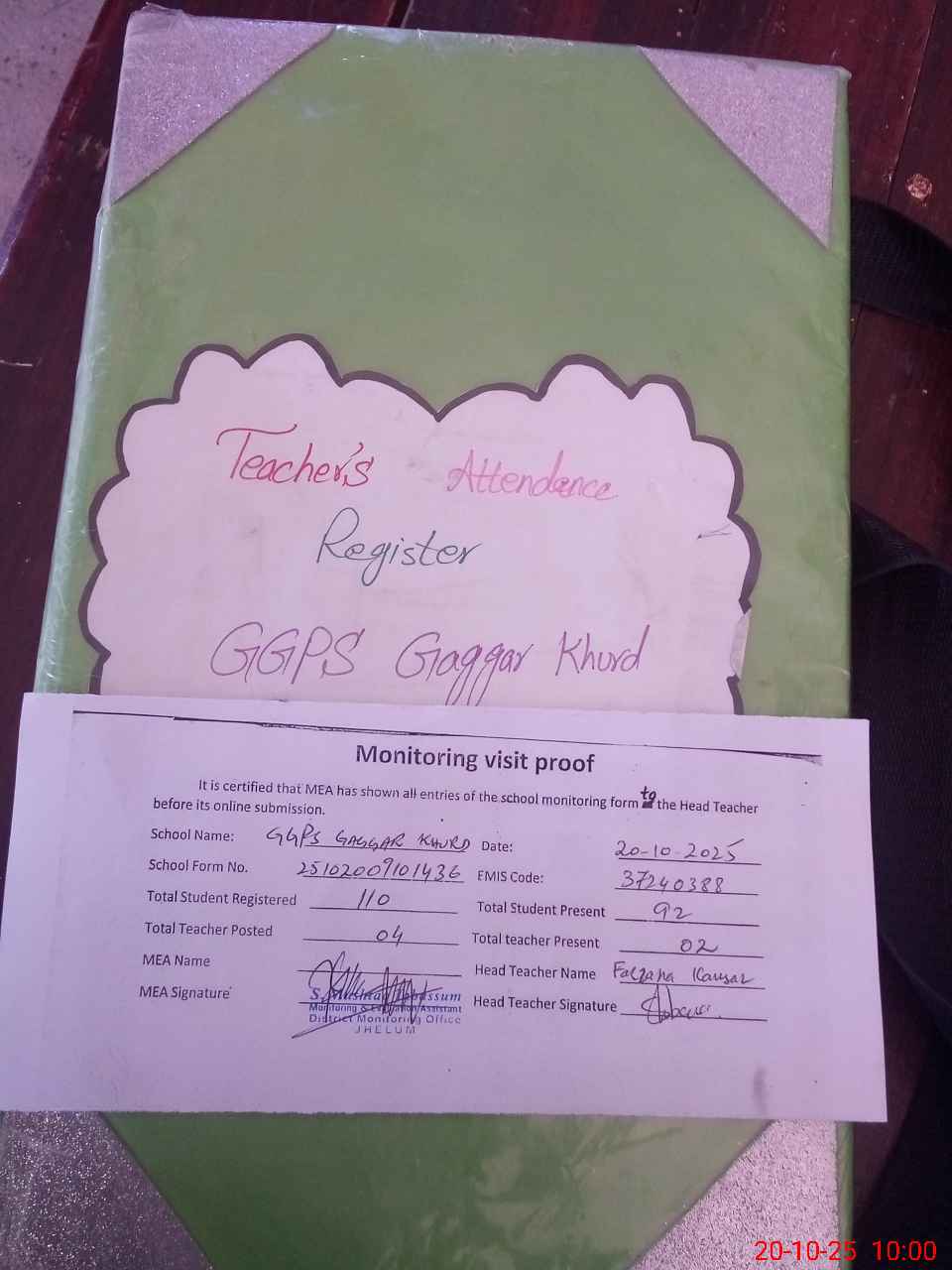 | EMIS Code: 37240388 | Name of School: GGPS GAGGAR KHURD | |||