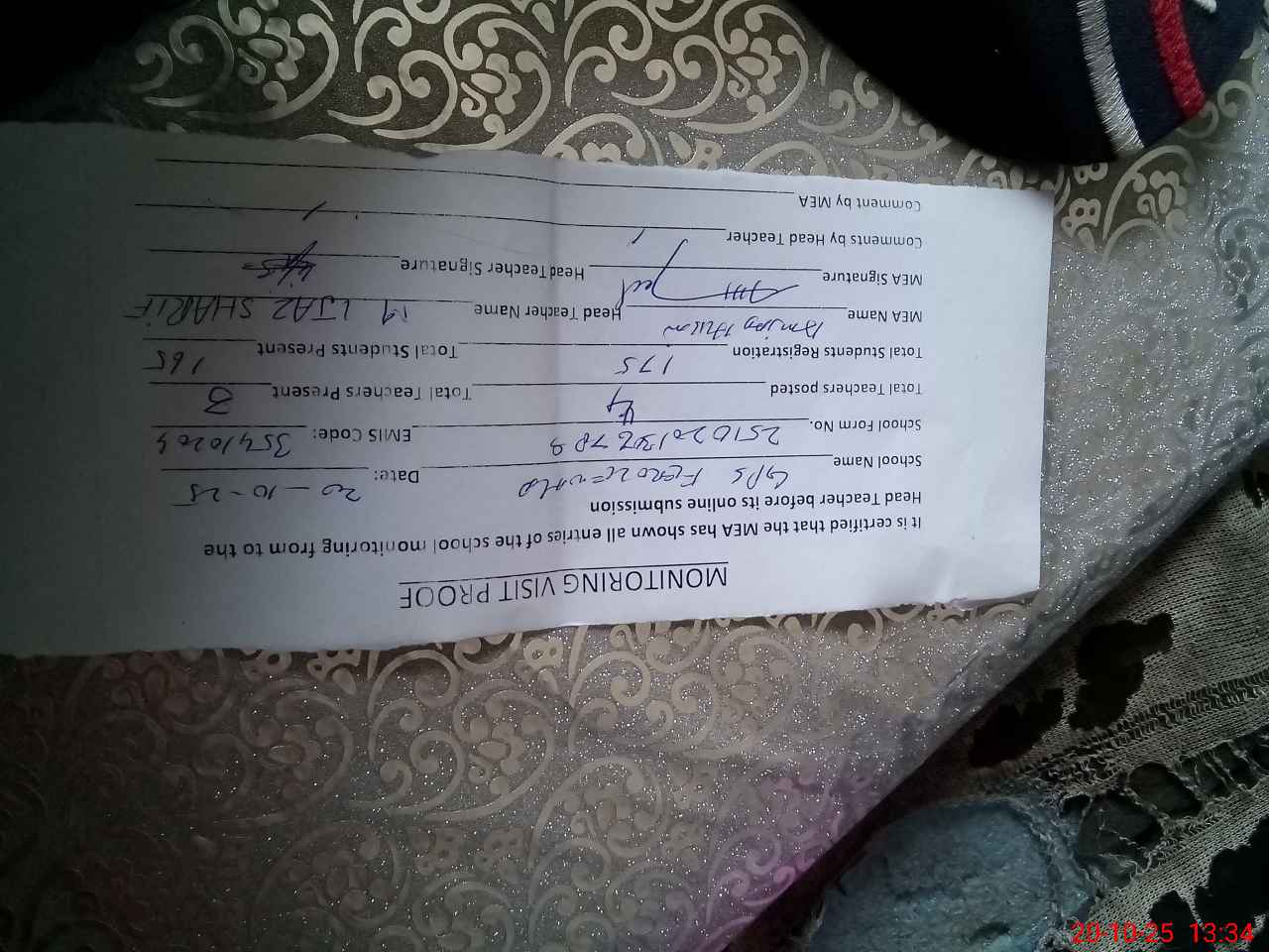 | Name: MEj**** Sh**** Designation: (School Headmaster's/Headmistress's) PTC/JV Phone/Cell Number: 03**** |