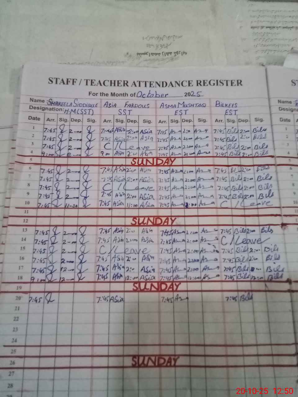 | CNIC | Full Name | Designation | R/C | Absence During Last Calender Month |