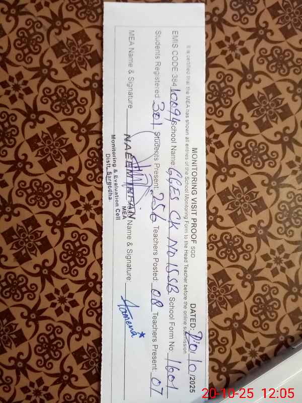 | Certified that this School was Inspected by the Undersigned MEA/DMO Today and the Information Stated Above is as Per Record. | |||||