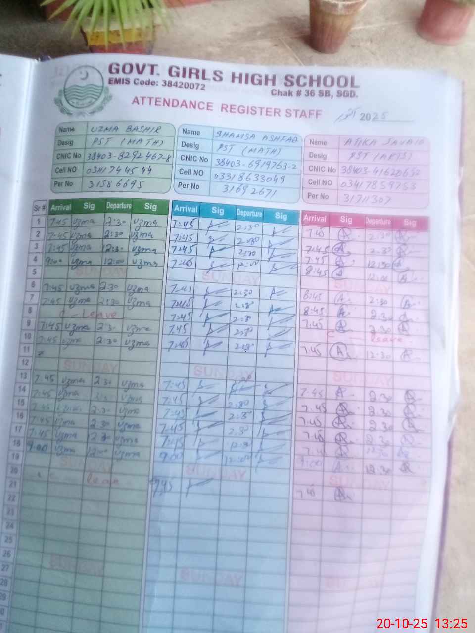| Name: Ar**** Designation: (School Headmaster's/Headmistress's) SST (SC) Phone/Cell Number: 03**** |