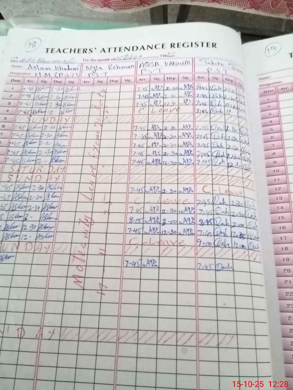 | Leave | Duty | Absent | Maternity | Medical | Ex- Pak |