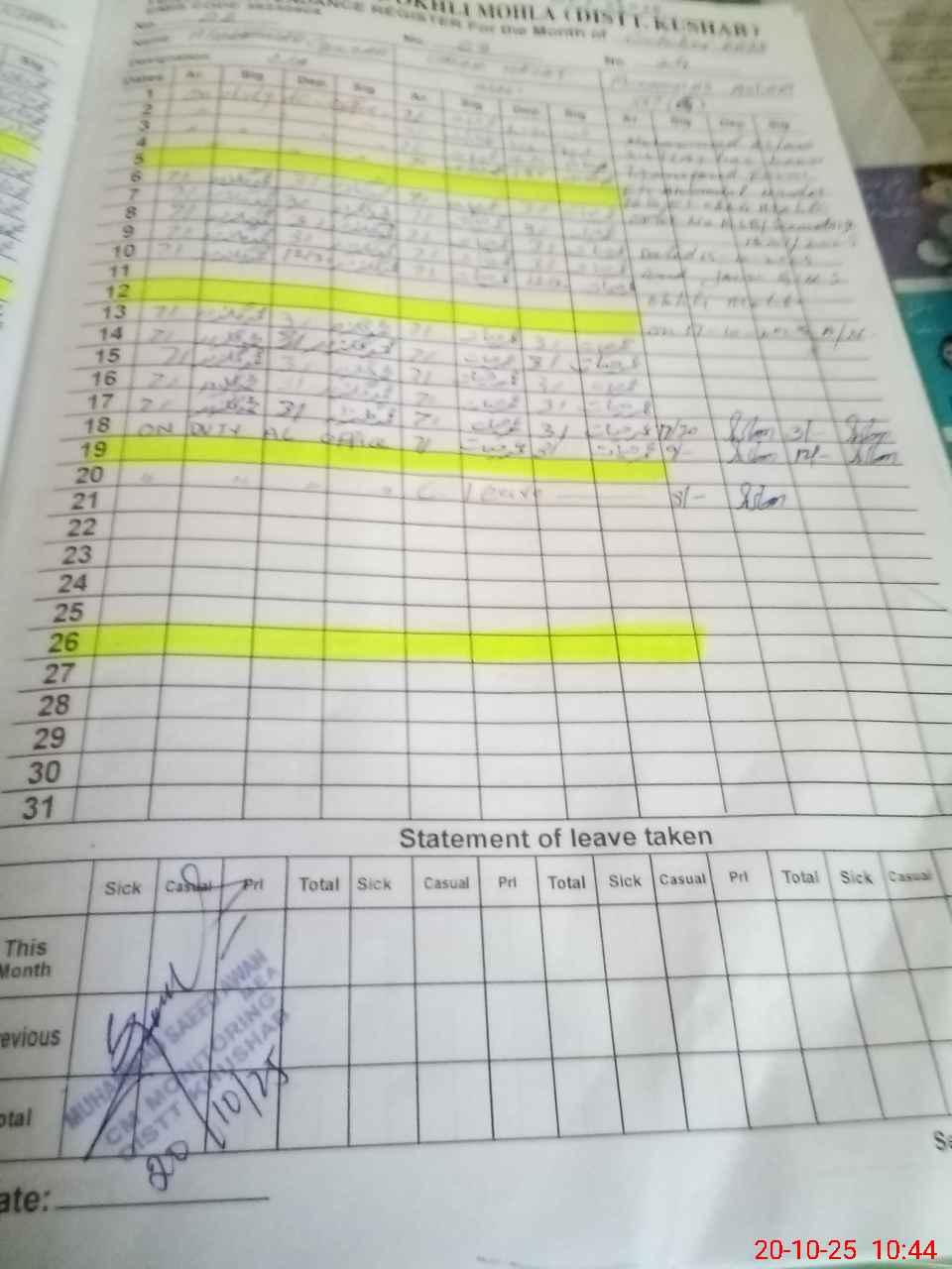 | CNIC | Full Name | Designation | R/C | Absence During Last Calender Month |