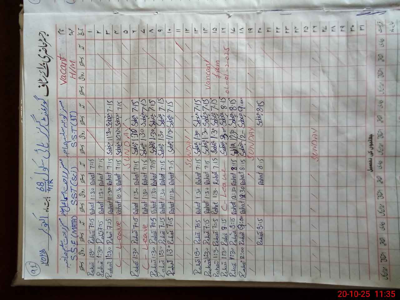 | Leave | Duty | Absent | Maternity | Medical | Ex- Pak |
