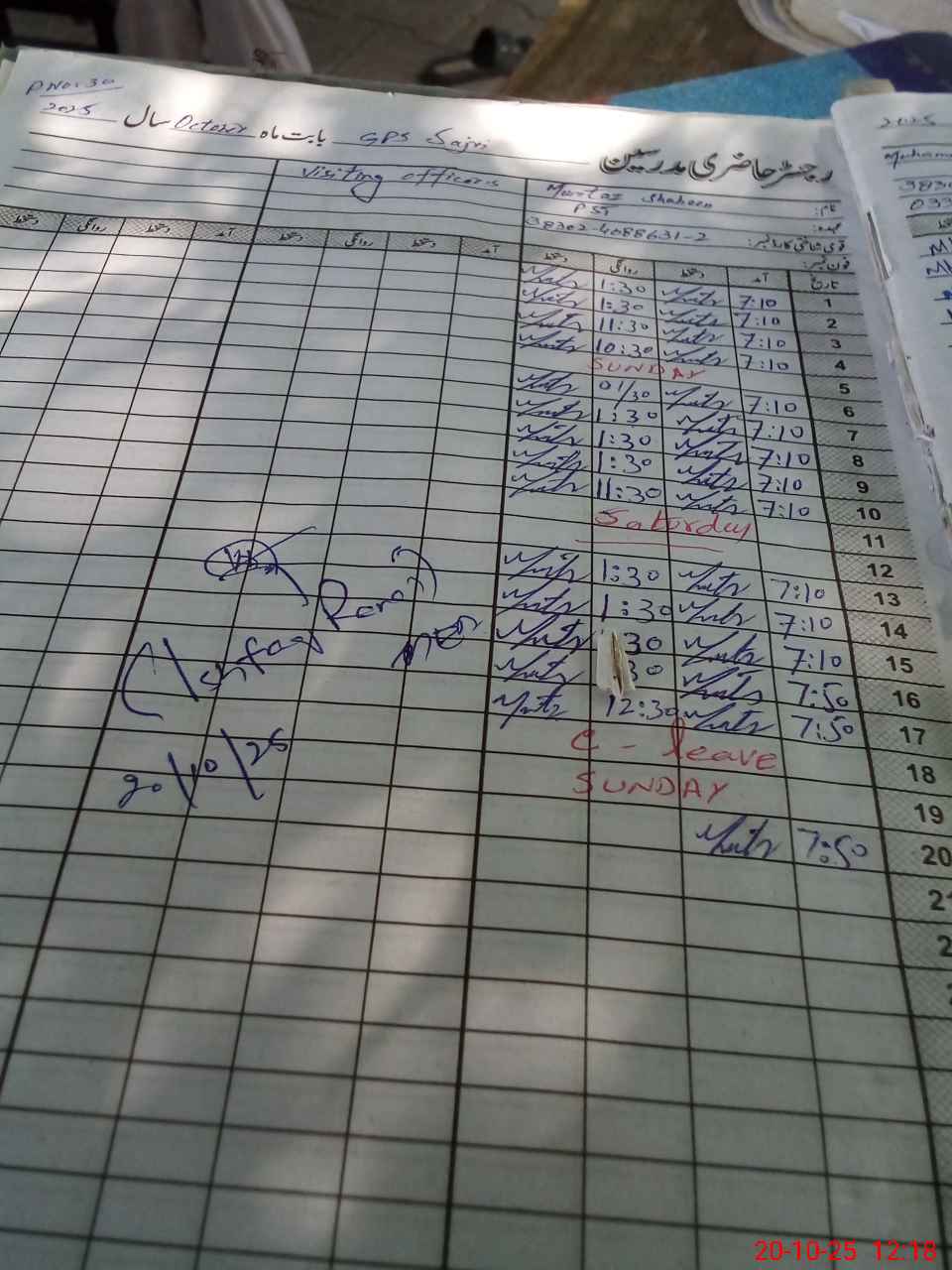 | CNIC | Full Name | Designation | R/C | Absence During Last Calender Month |