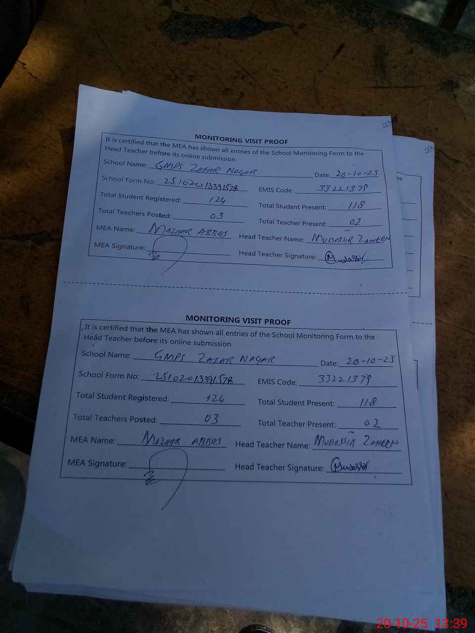 | EMIS Code: 33221379 | Name of School: GMPS ZAFAR NAGAR | |||
