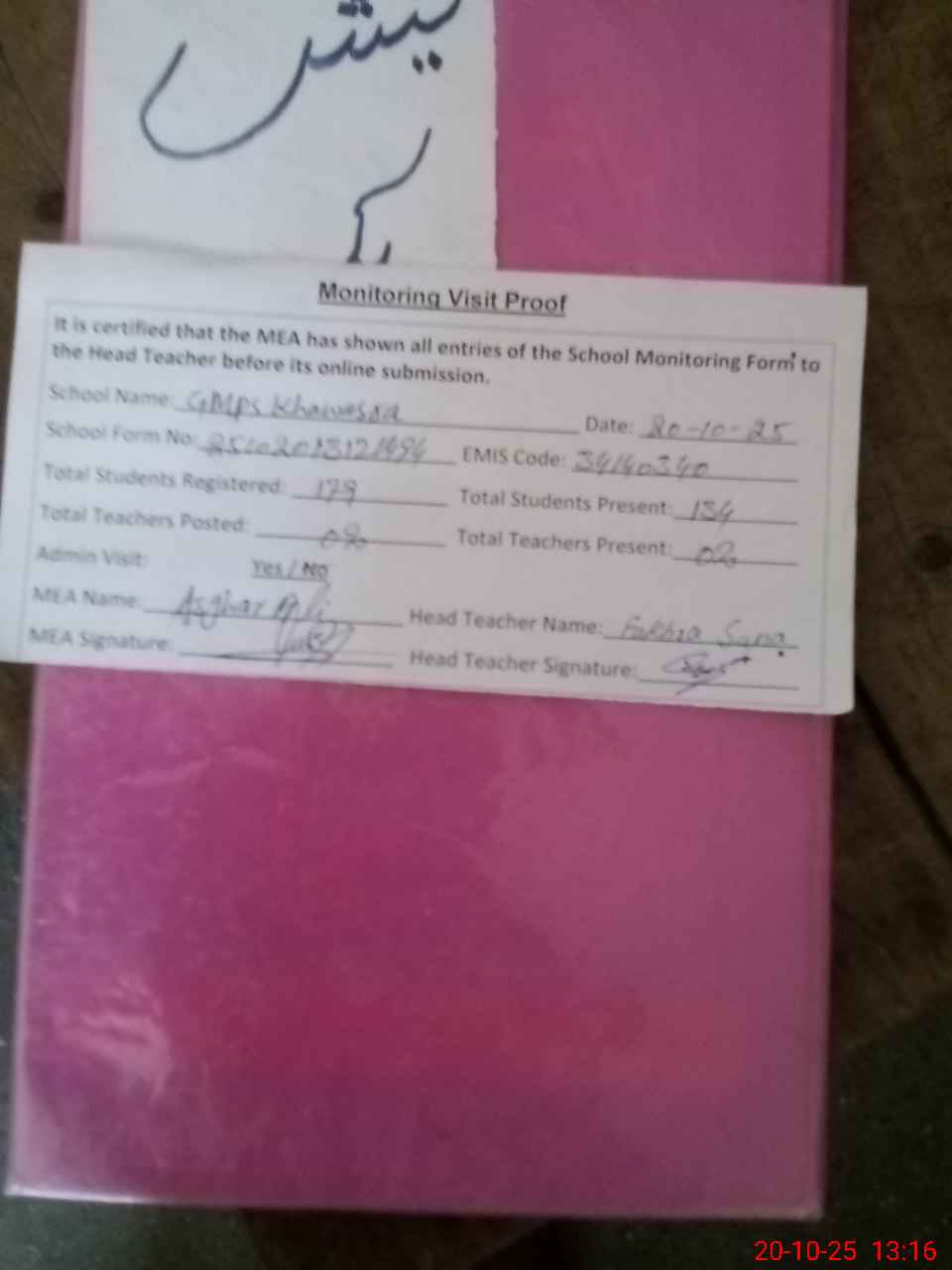 | EMIS Code: 34140340 | Name of School: GMPS KHAWASRA | |||