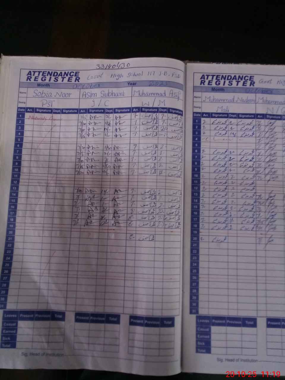 | 33**** | As**** Su**** | JC | Regular | 3 | 0 | 0 | 0 | 0 | 0 | 0 | 0 | 3 | Absent (Un-Authorized) |