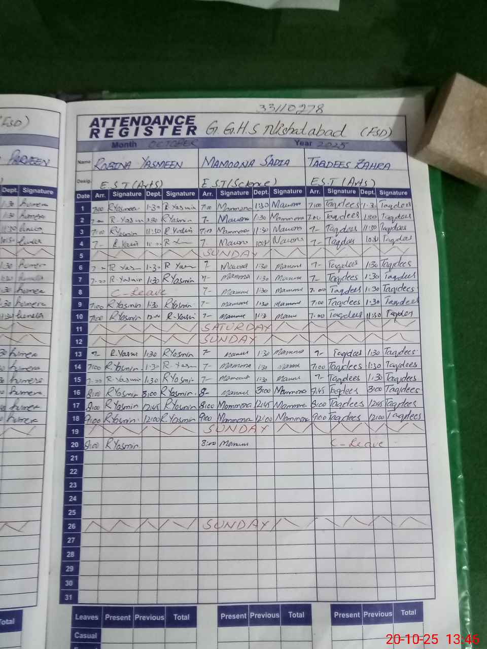 | EMIS Code: 33110278 | Name of School: GGHS NISHAT ABAD FSD | |||