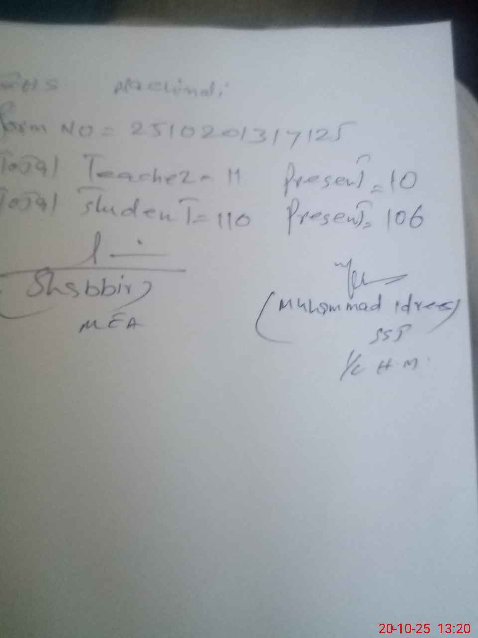 | Name: MU**** ID**** Designation: (School Headmaster's/Headmistress's) Headmaster Phone/Cell Number: 03**** |