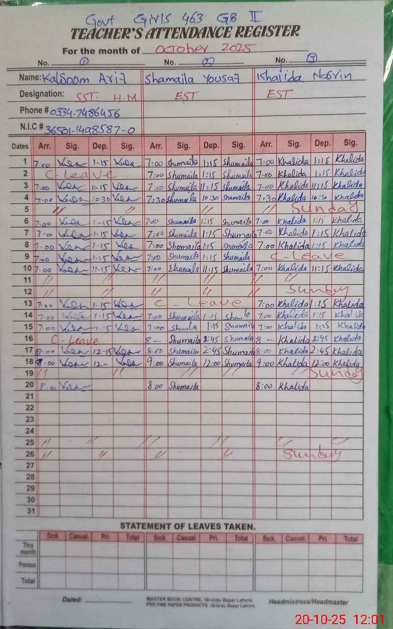 | Name: KA**** AR**** Designation: (School Headmaster's/Headmistress's) SST (GENERAL ) Phone/Cell Number: 03**** |