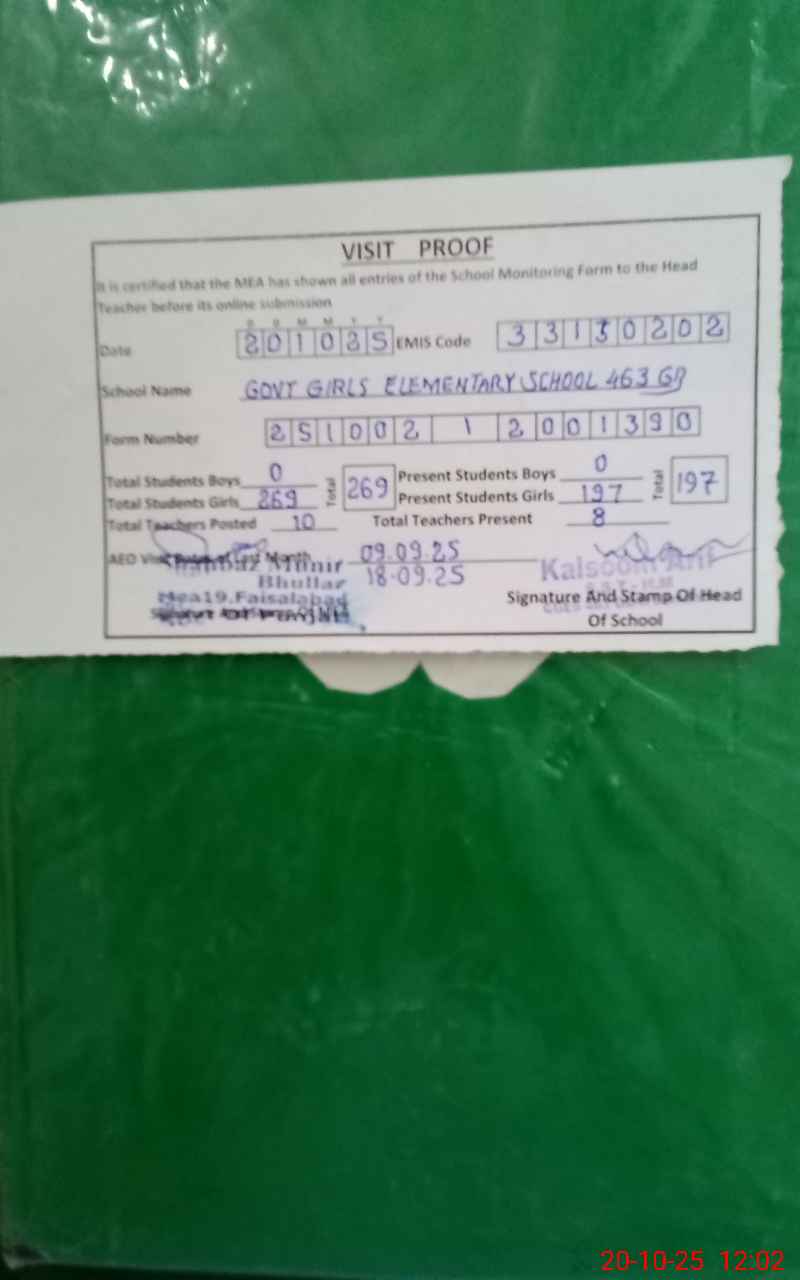 | EMIS Code: 33130202 | Name of School: GGES CHAK 463 GB II SAMUNDRI WEST | |||