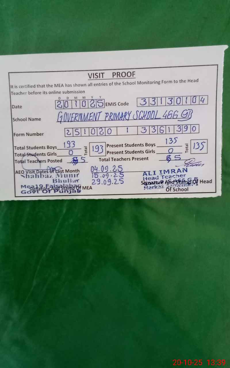 | EMIS Code: 33130104 | Name of School: GPS 466 GB | |||