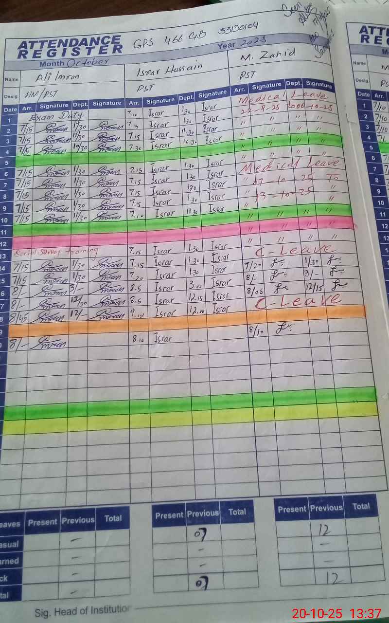 | Name: AL**** IM**** Designation: (School Headmaster's/Headmistress's) PST Phone/Cell Number: 03**** |