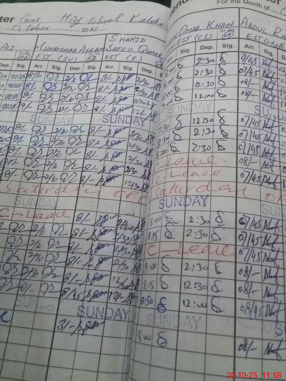 | 35**** | Mu**** Fa**** Ja**** | PST | Regular | 0 | 0 | 0 | 0 | 0 | 0 | 0 | 0 | 0 | Exam Duty |