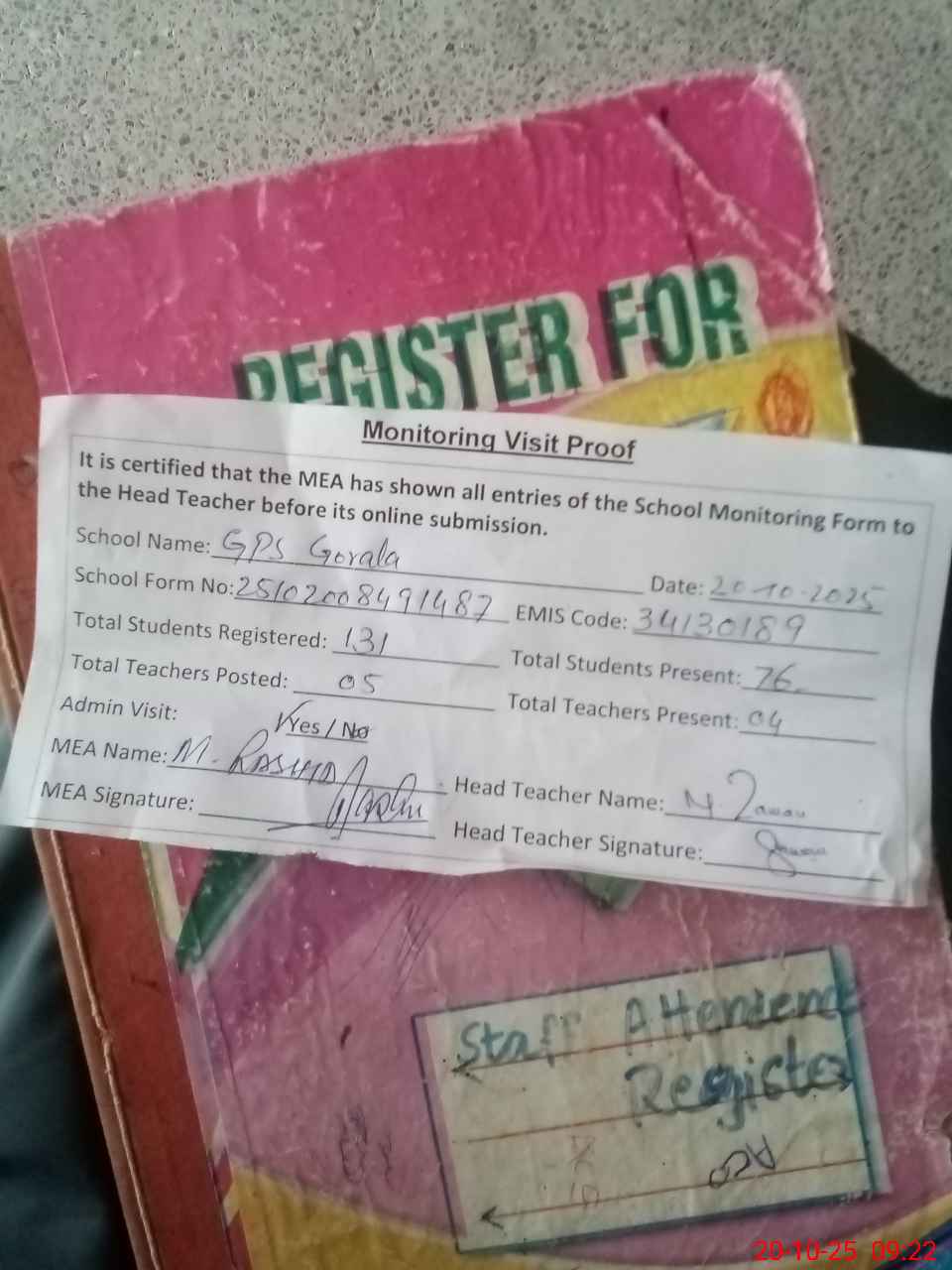 | EMIS Code: 34130189 | Name of School: GPS GORALA | |||