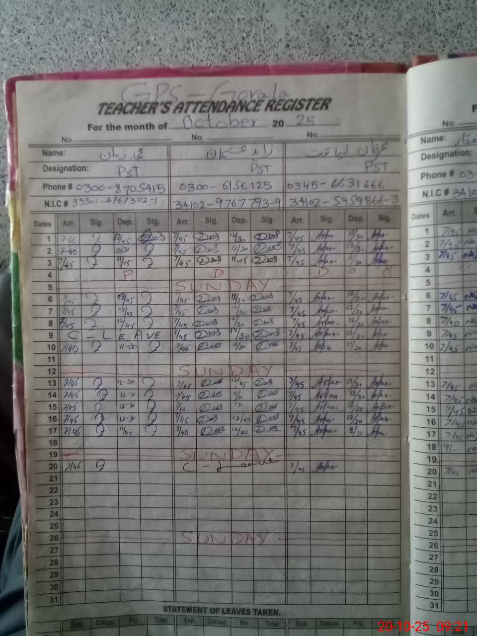 | 34**** | Za**** Us**** | 2 | 2 | 0 | 0 | 0 | 0 | 0 | 0 | 0 | 0 | 0 | Absent (Un-Authorized) |
