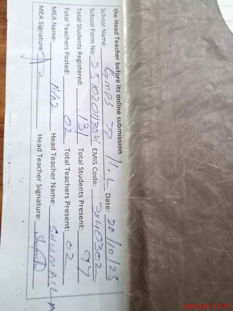 | EMIS Code: 31140302 | Name of School: GGPS 77/1-L HAROON ABAD | |||