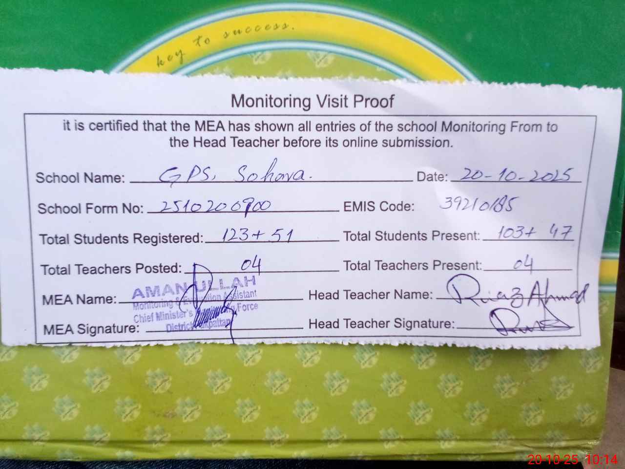| EMIS Code: 39210185 | Name of School: GPS SOHARA | |||