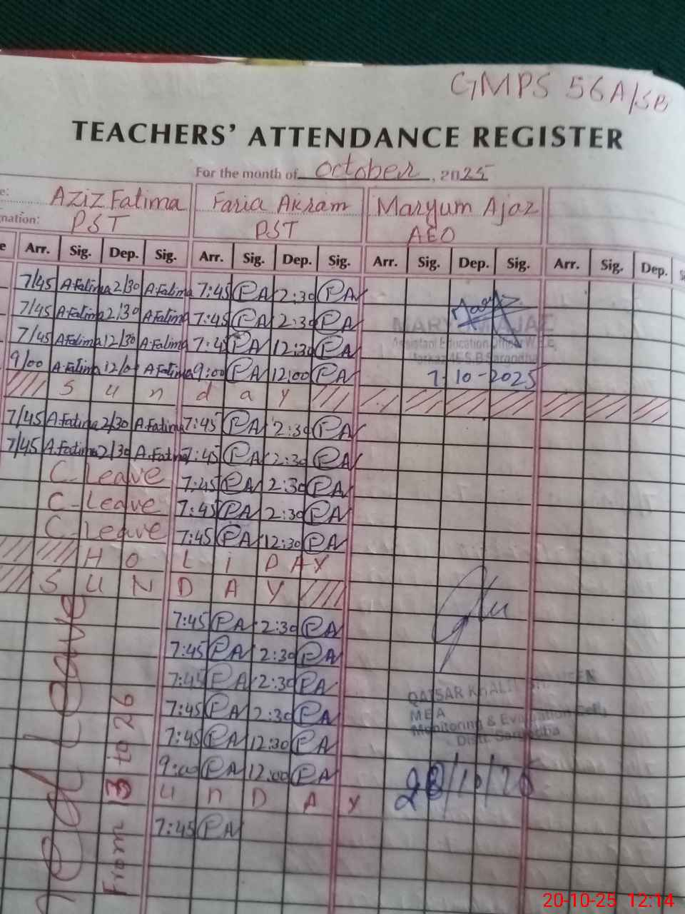 | EMIS Code: 38420506 | Name of School: GMPS CHAK NO.56 A-SB | |||