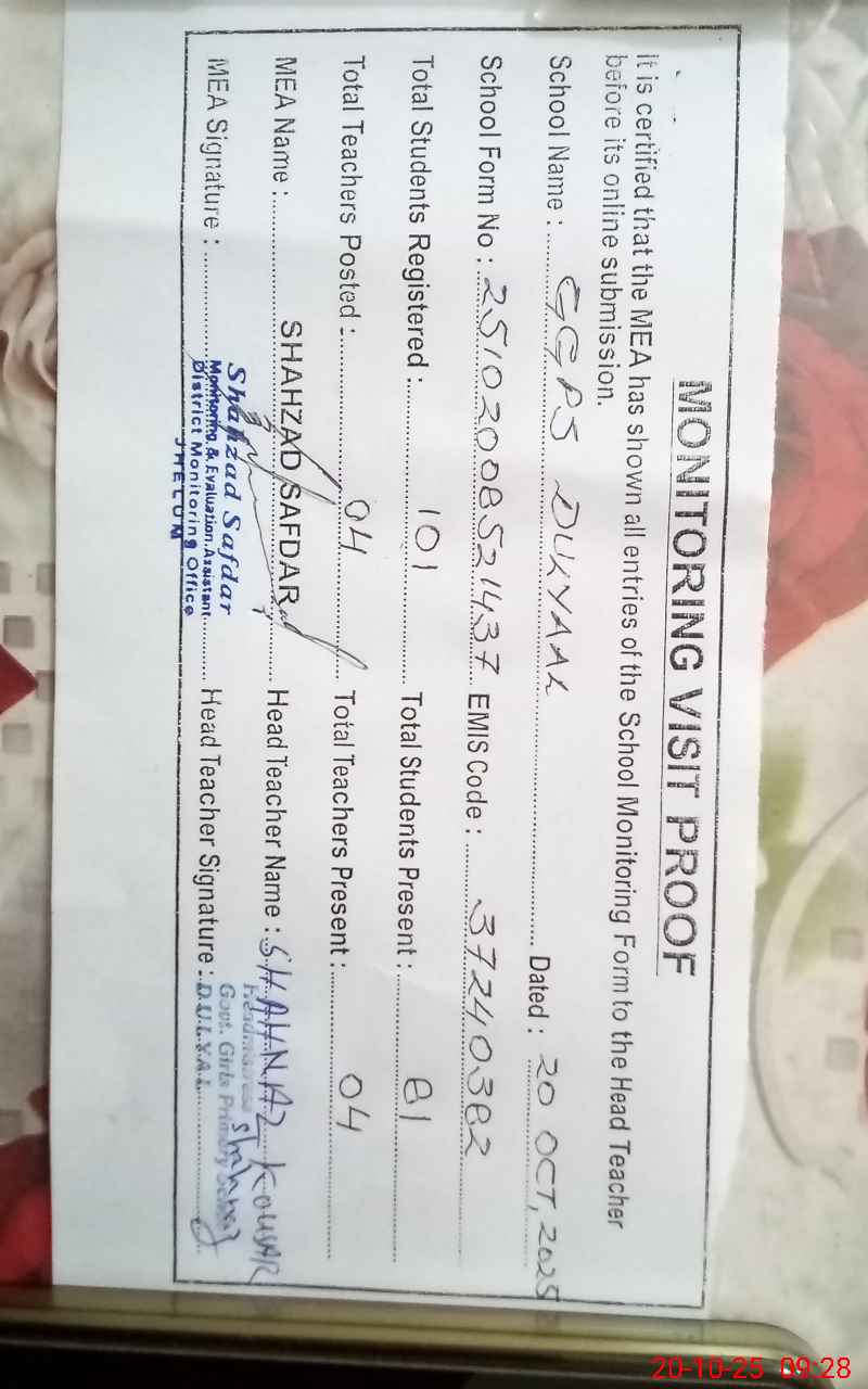 | EMIS Code: 37240382 | Name of School: GGPS DULYAAL | |||