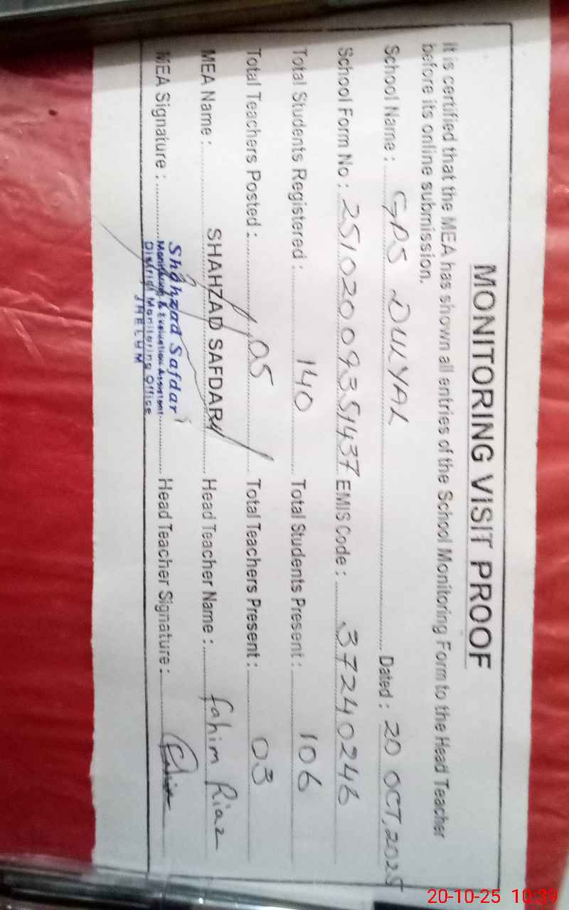 | Certified that this School was Inspected by the Undersigned MEA/DMO Today and the Information Stated Above is as Per Record. | |||||