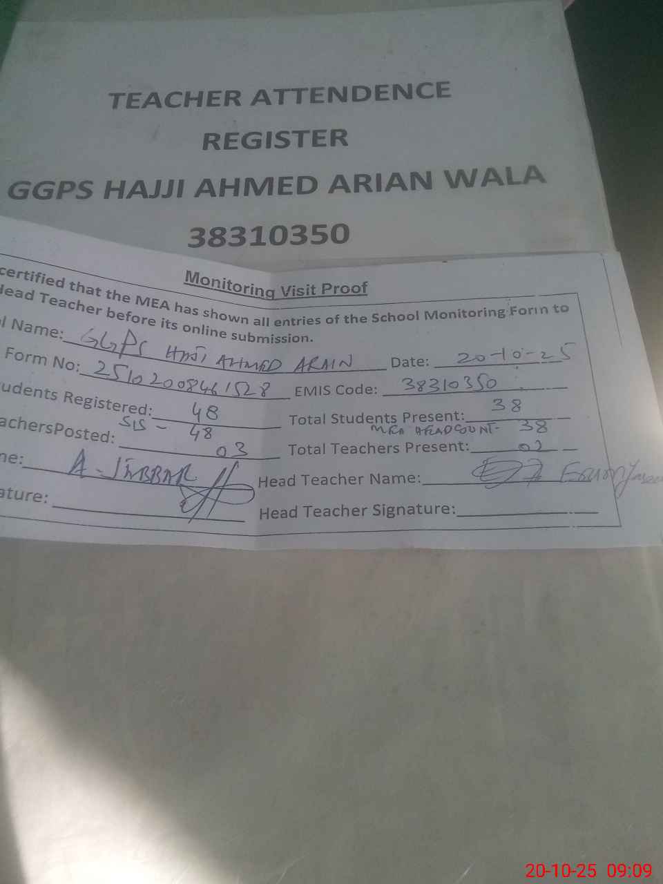| EMIS Code: 38310350 | Name of School: GGPS HAJI AHMED ARAIN WALA | |||