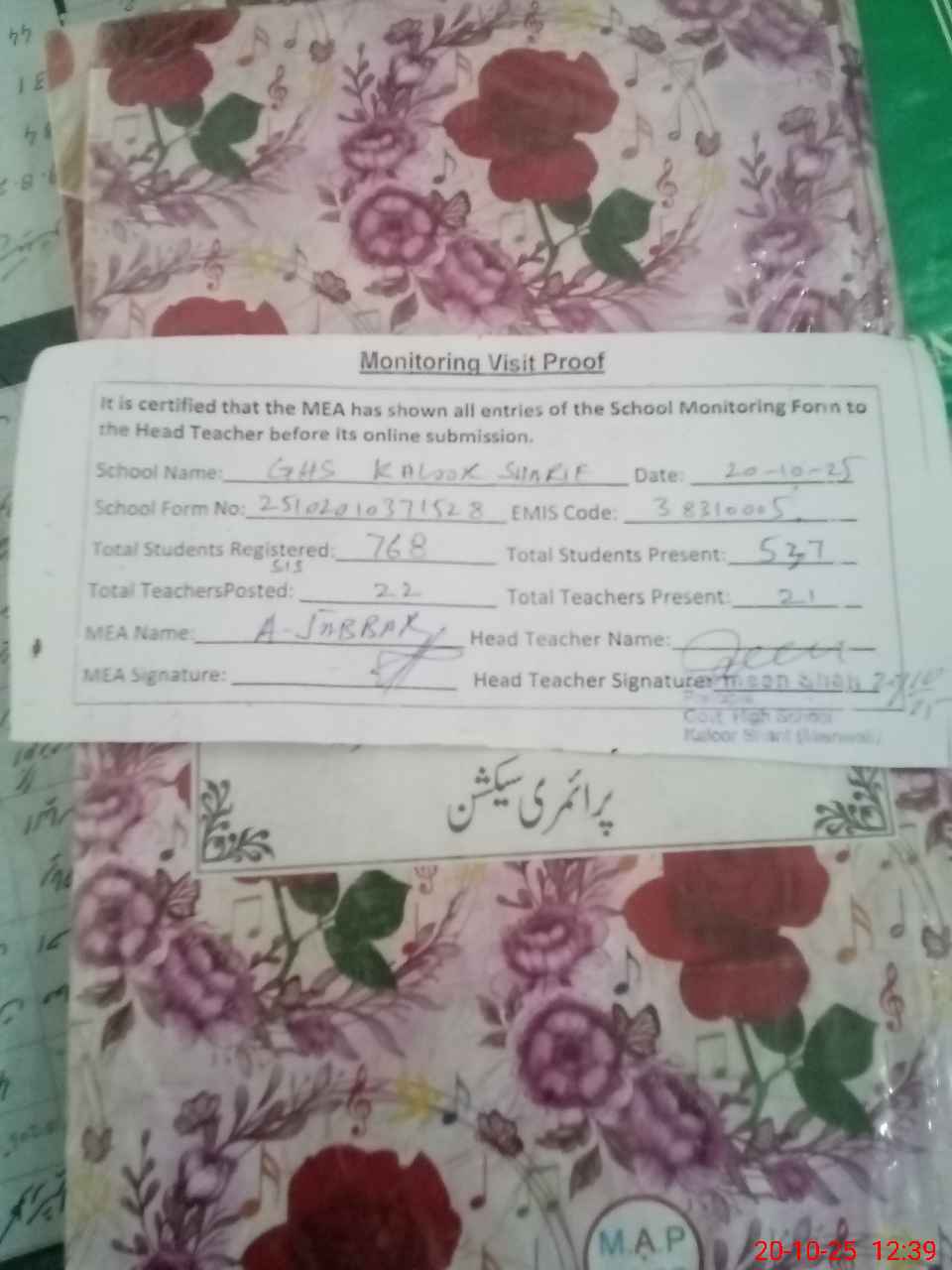 | EMIS Code: 38310005 | Name of School: GHS KALLOR SHARIF | |||