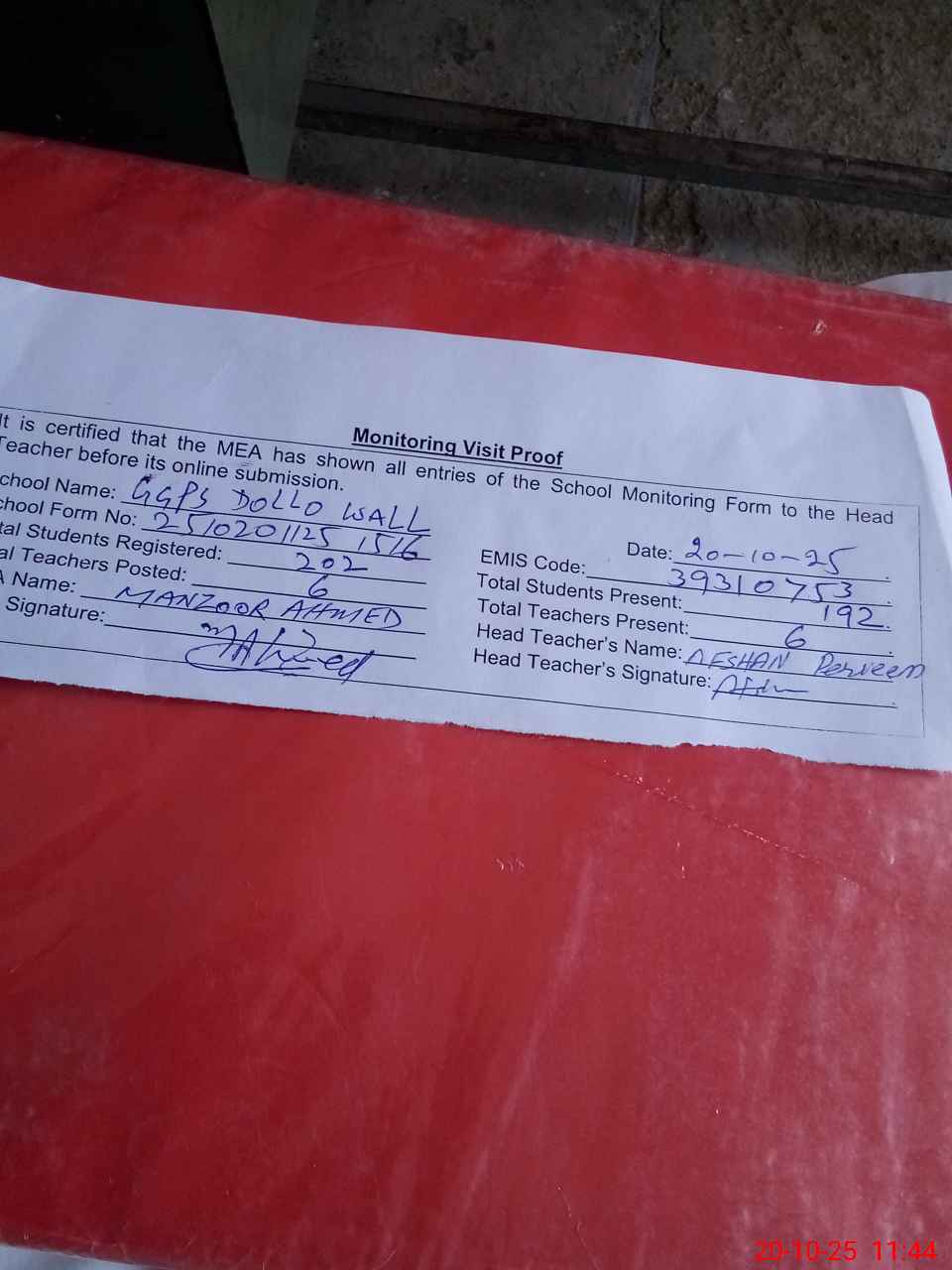 | Certified that this School was Inspected by the Undersigned MEA/DMO Today and the Information Stated Above is as Per Record. | |||||