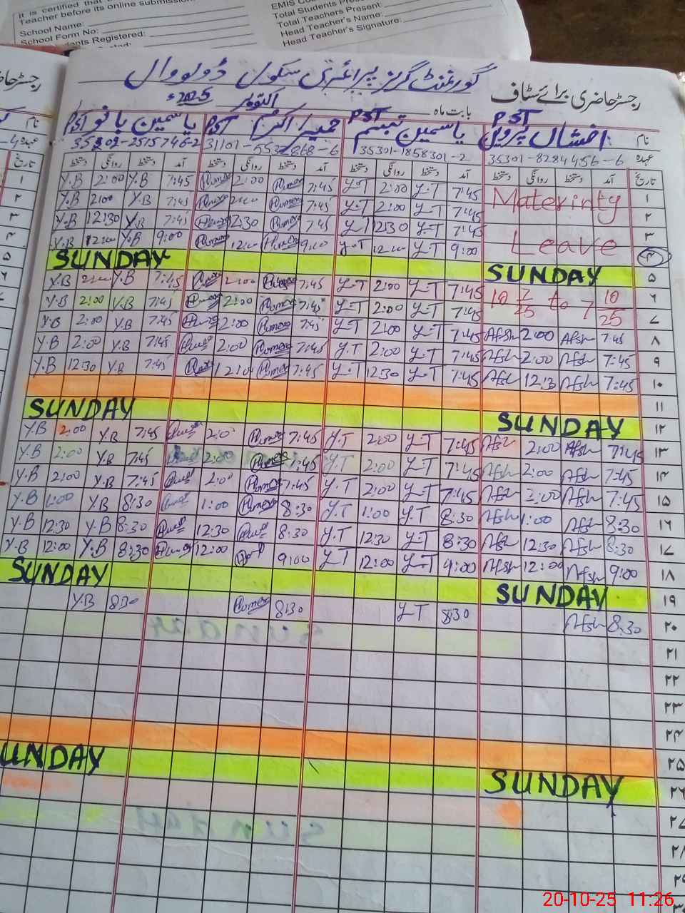| Leave | Duty | Absent | Maternity | Medical | Ex- Pak |