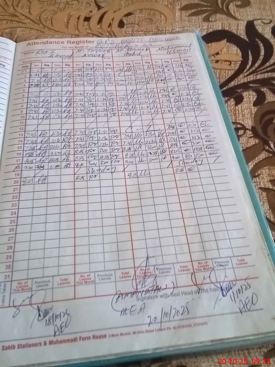 | Attendance Register | Head Teacher | MEA with School | Visit Proof |