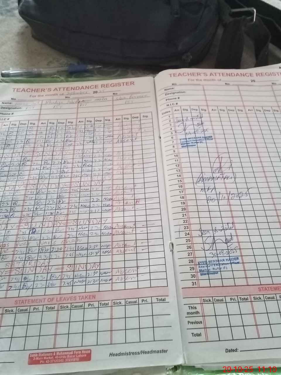 | Name: NA**** AR**** Designation: (School Headmaster's/Headmistress's) PST Phone/Cell Number: 03**** |