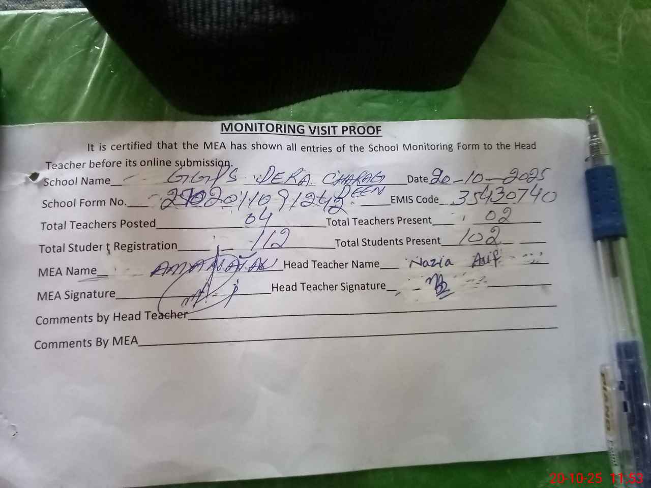 | EMIS Code: 35430740 | Name of School: GGPS DERA CHARAGHDIN | |||