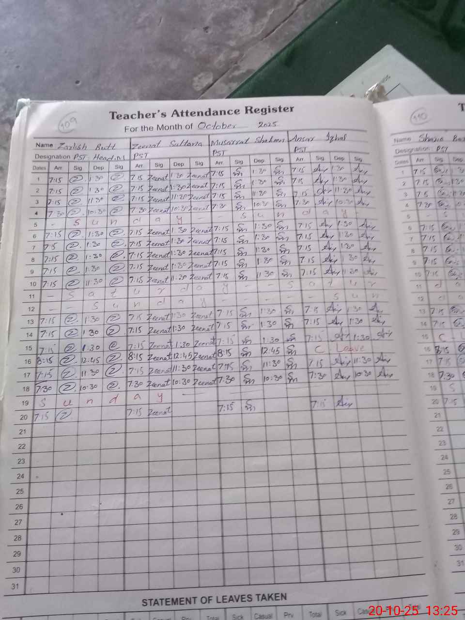 | CNIC | Full Name | Designation | R/C | Absence During Last Calender Month |