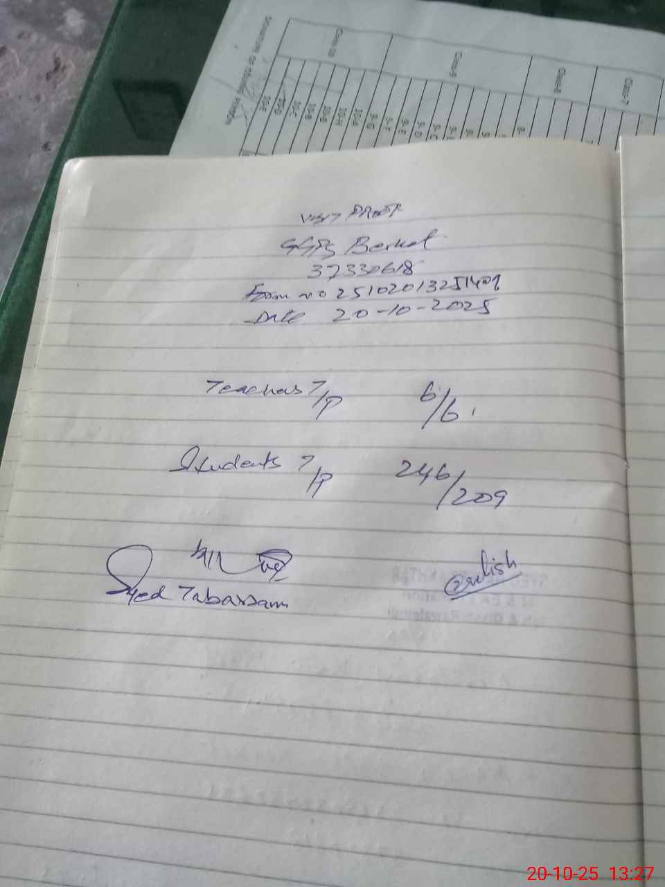 | Attendance Register | Head Teacher | MEA with School | Visit Proof |