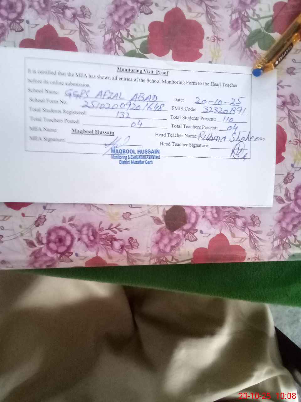 | EMIS Code: 32320891 | Name of School: GGPS AFZAL ABAD | |||